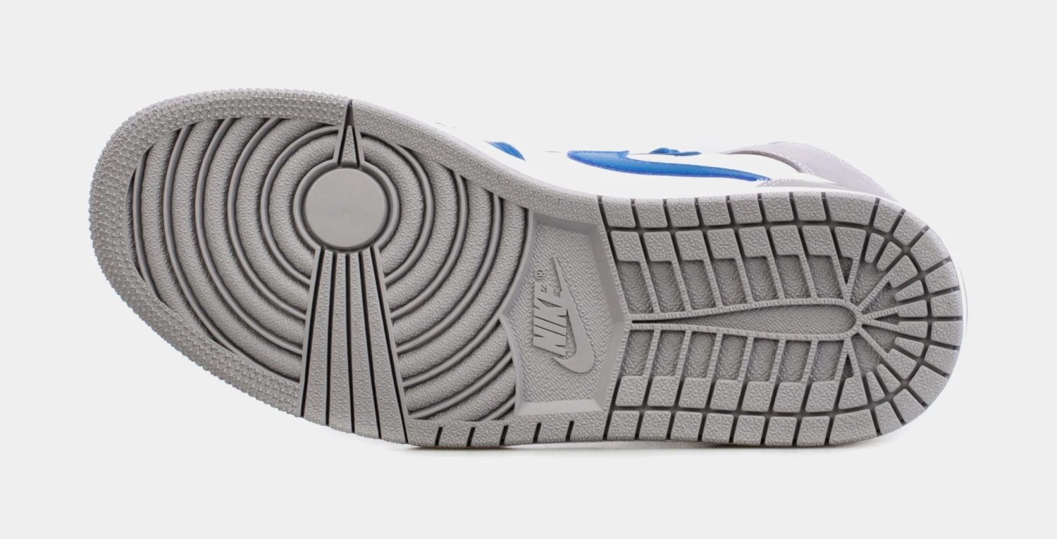 This offering of the Air Jordan 1 comes in a similar color blocking to the OG “True Blue” Air Jordan 3. It features a White leather base with Grey and Blue overlays atop a White midsole and Grey rubber outsole.