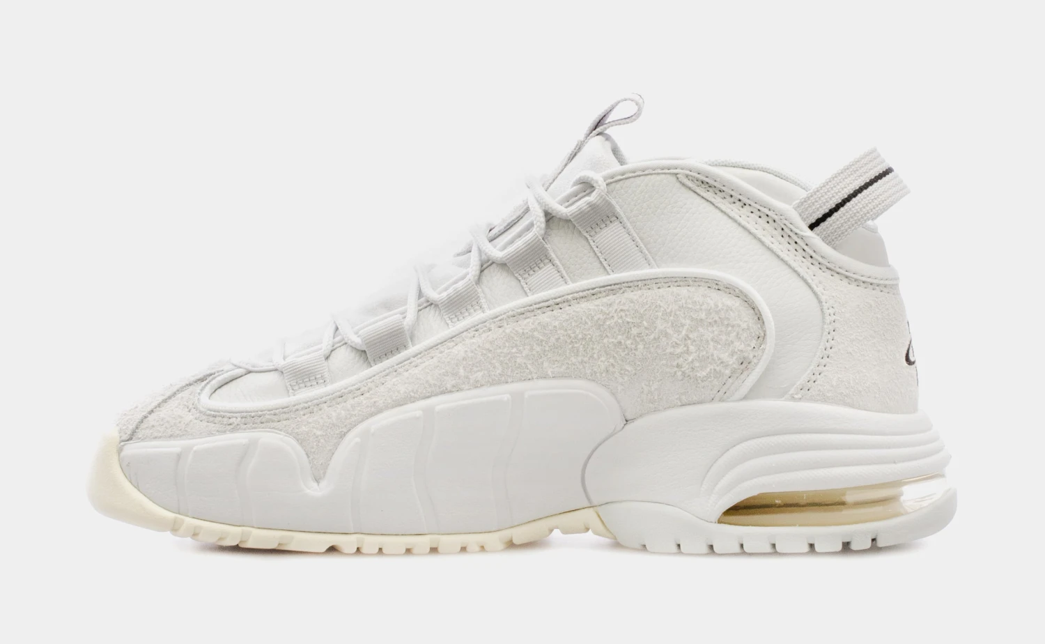 This offering of the Nike Air Max Penny 1 comes constructed in a mix of premium leather and hairy suede materials. It features a White base with neutral-colored overlays paired with Black branding throughout. A White midsole atop a Cream rubber outsole completes the design.